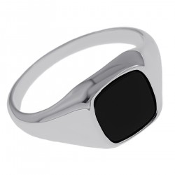Bague Chevalière en Argent 925 rhodié et Onyx synthétique