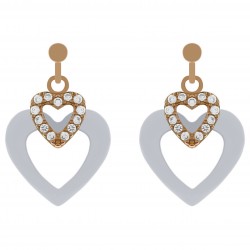 Boucles d'oreilles coeur Plaqué Or rose 18 carats, céramique et Zirconium