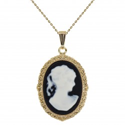 Collier camée noir petit modèle Plaqué Or 18 carats et Résine