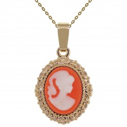 Collier camée orange petit modèle Plaqué Or 18 carats et Résine